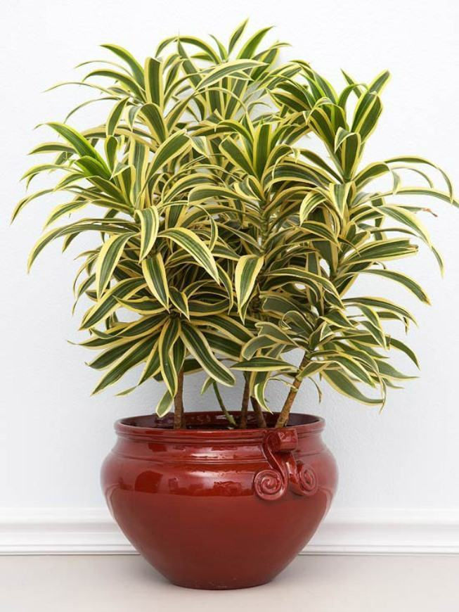 É uma das mais comuns dentro de casa, não precisa de luz direta, mas precisa de bastante claridade. Ela tem folhas com tons que vão do verde limão ao branco, dão um toque em contraste com paredes claras, por exemplo.